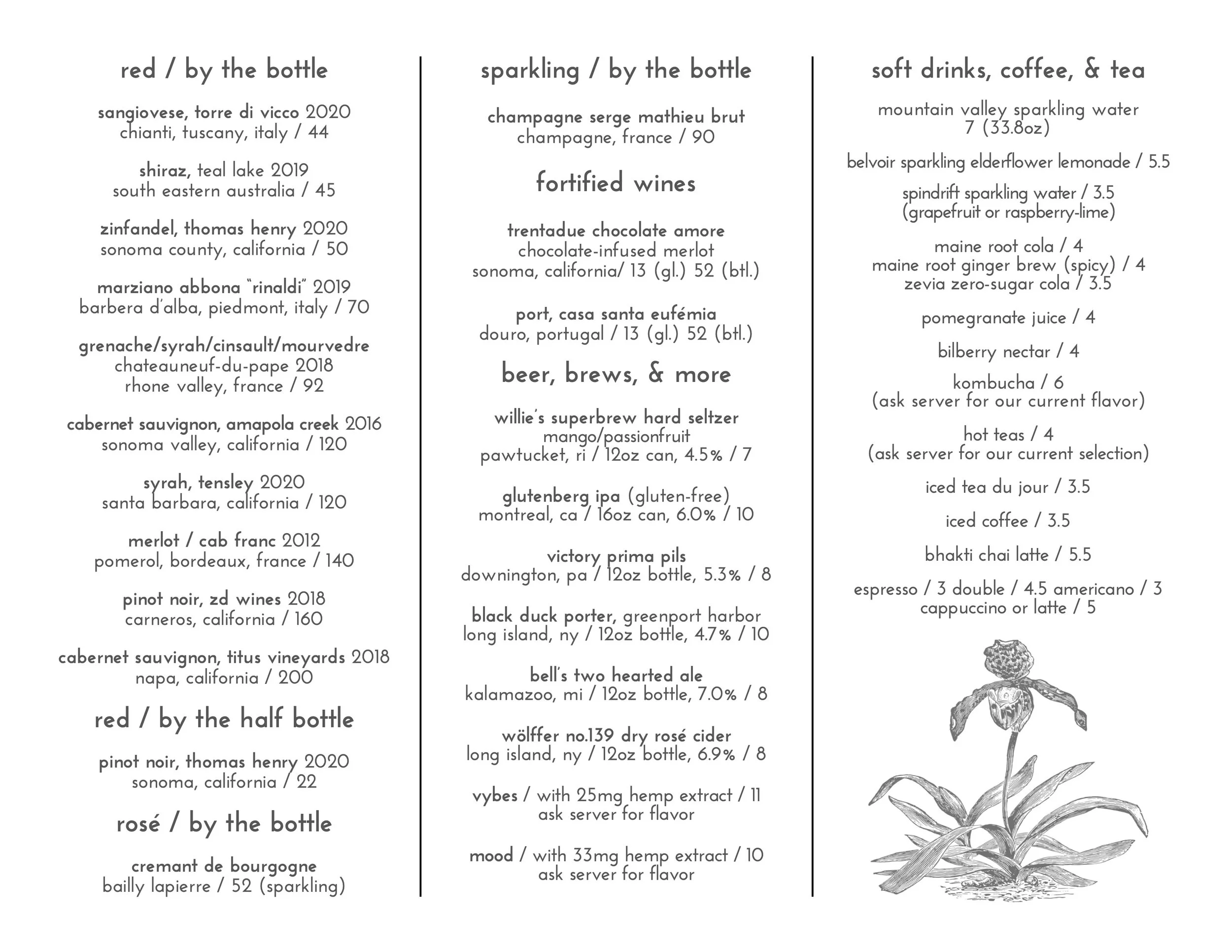 please inform your server of any allergies, as all ingredients are not listed on the menu and cross-contamination is a possibility